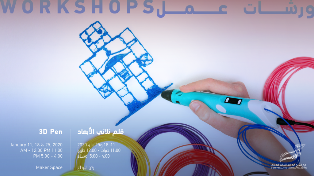 في هذه الورشة يقوم الصغار والكبار بعمل رسمة تكون ثلاثية الابعاد عن طريق عمل خطوط بلاستيكية او اكريليكية