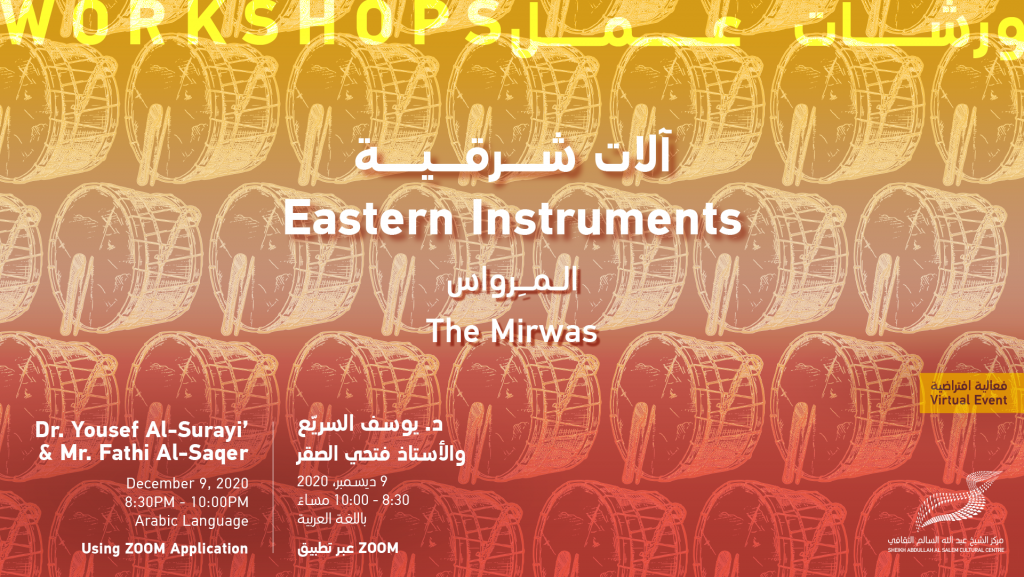 تتضمن ورشة العمل نبذة عن تاريخ آلة المرواس وعن صناعتها ودورها في الفن والتراث الكويتي ولساحل الخليج العربي – وسوف نرى أساليب العزف عليها.